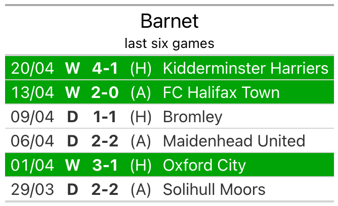 With 91 goals in 46 games so far this season, Barnet are the league’s second-highest scorers with 2.0 goals per game. And they are conceding fewer than average, letting in 60 goals at a rate of 1.3 per game.