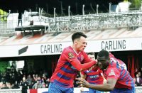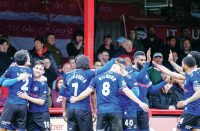 ARM’S RACE: Sutton’s Will Davies and Hartlepool’s Dan Dodds battle