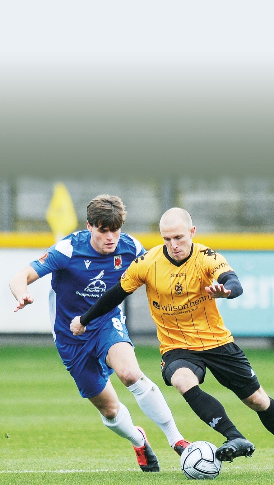 TIGHT TUSSLE: Southport’s David Morgan battles with Chorley’s Mike Calveley