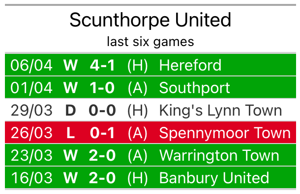 Scunthorpe’s last match was on April 6, a 4-1 win against Hereford.