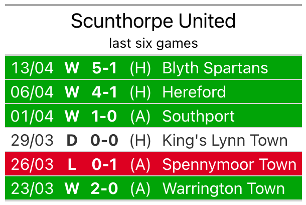 Scunthorpe beat Blyth Spartans 5-1 last time out, also on April 13.