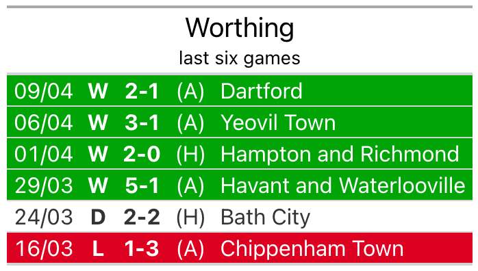Worthing beat Dartford 2-1 last time out, on Tuesday.