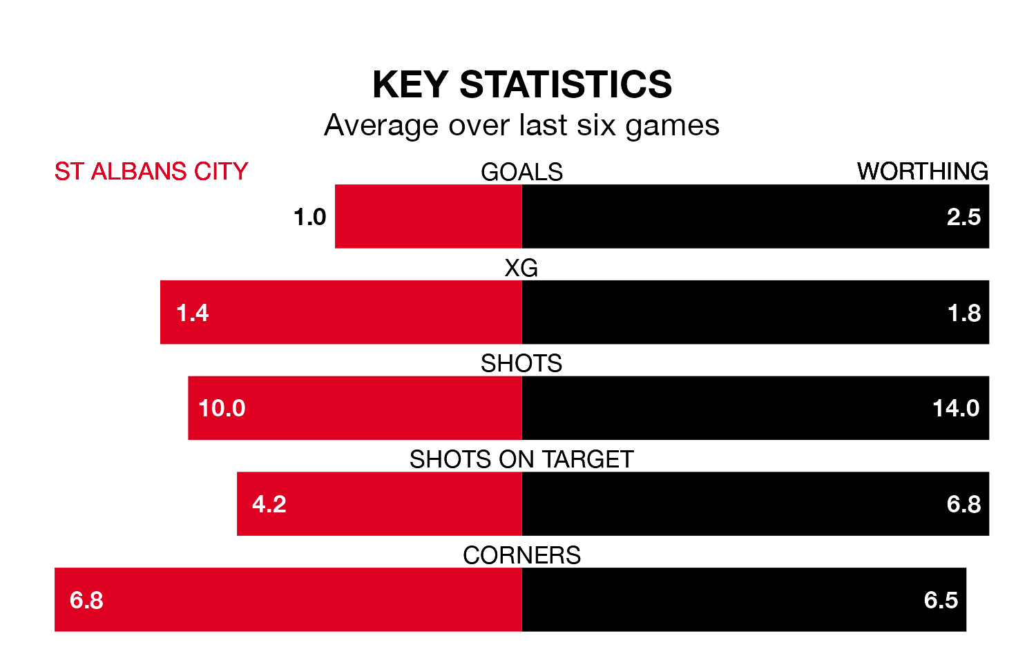 On average, St Albans scored 3.3 goals and Worthing 2.0 in those matches.