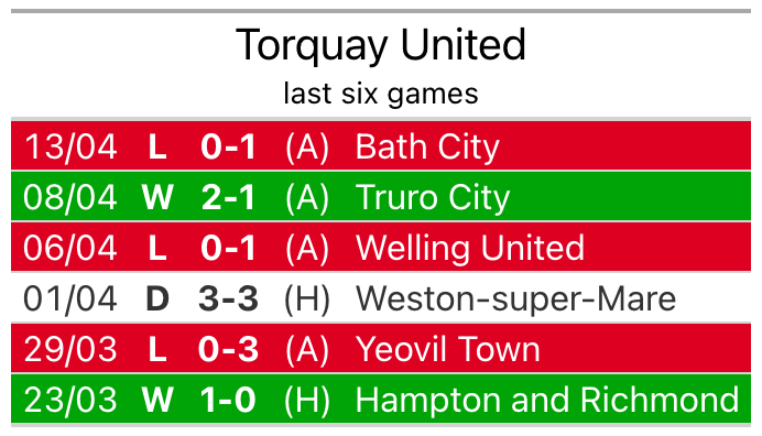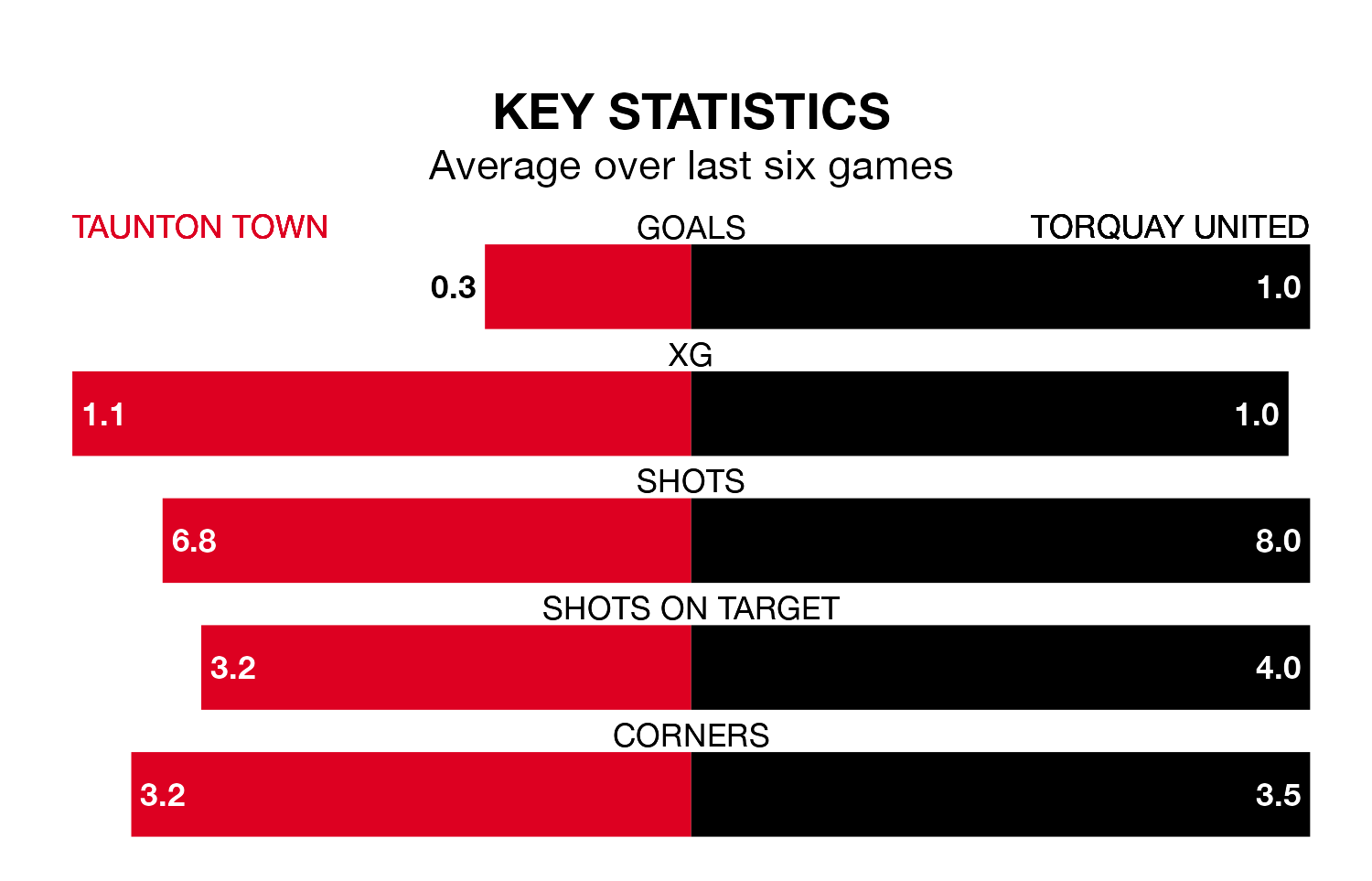 Torquay, meanwhile, are above average scorers, with 1.5 goals per game, compared to a league average of 1.4. They have conceded 1.7 goals per game.