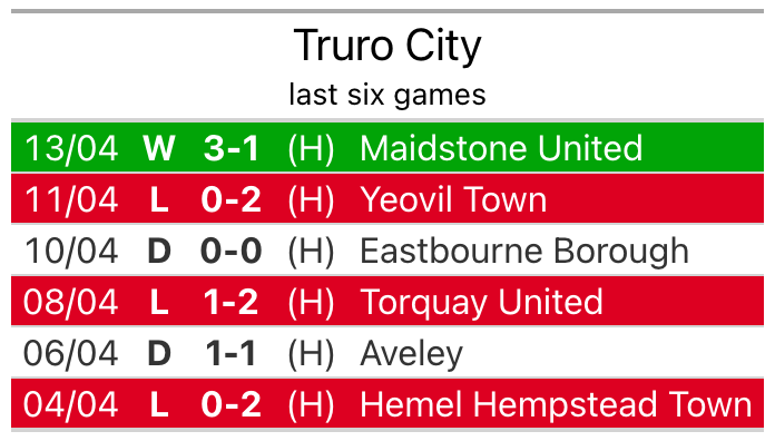In their last league match, on Saturday, Truro beat Maidstone United 3-1 at home.