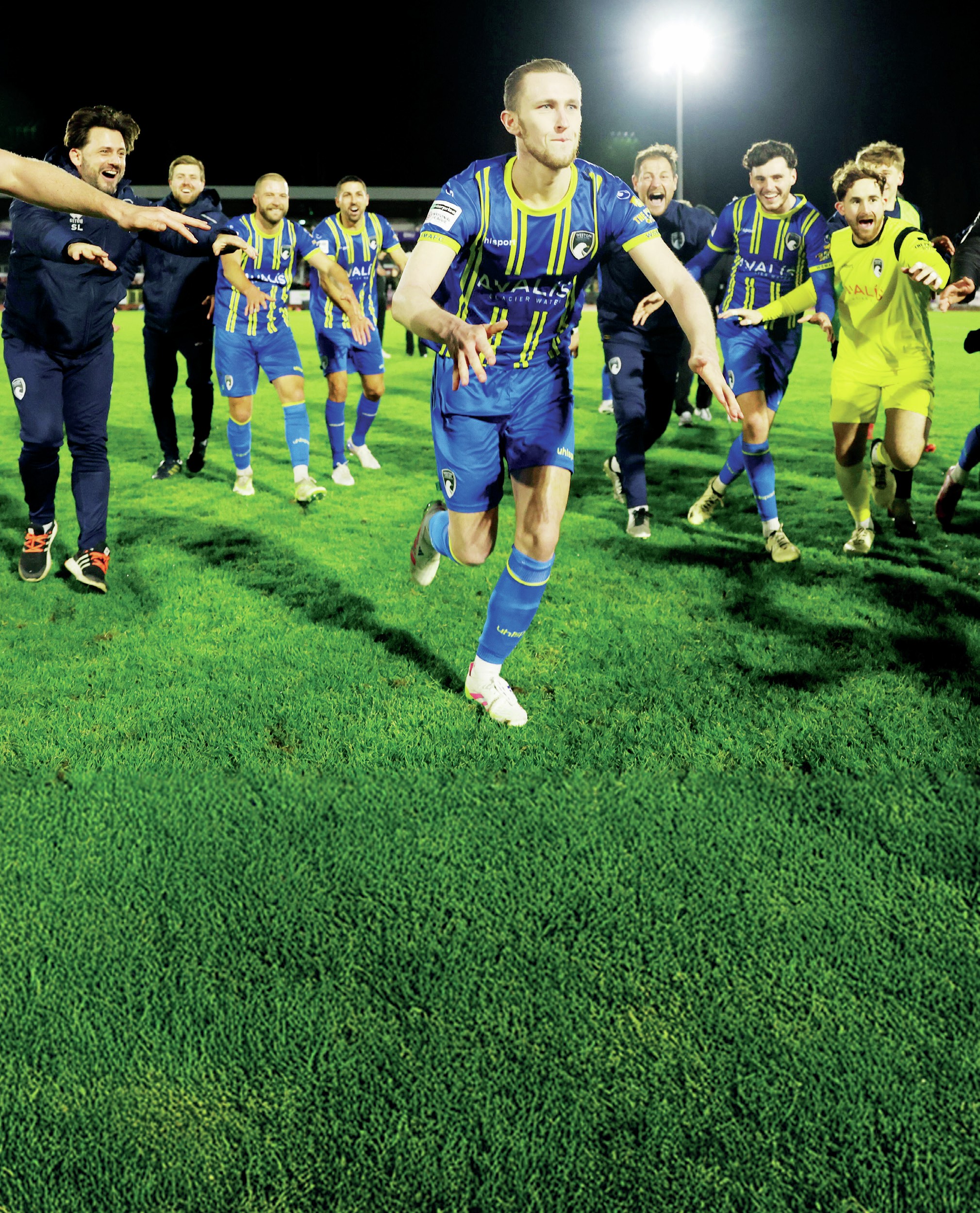 PARTY TIME: Weston-super-Mare players celebrate beating Chelmsford City in the last round