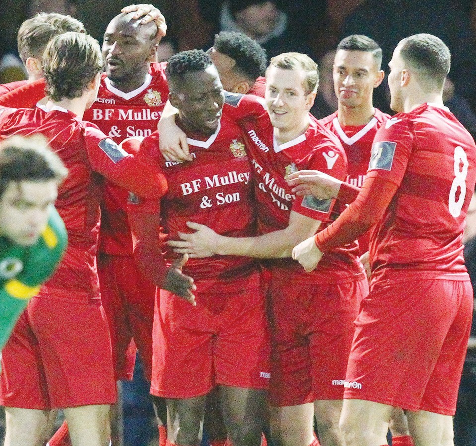By Chris Palmer DARTFORD 1 Carruthers 88 FOLKESTONE I 2 Pigott 33, Yussuf 79 PICK THAT ONE OUT: Invicta keeper Ted Collins can’t keep out Samir Carruthers’ 88th-minute consolation goal from a free-kick FOLKESTONE stretched their winning streak to nine as they condemned Dartford to a sixth defeat of the...