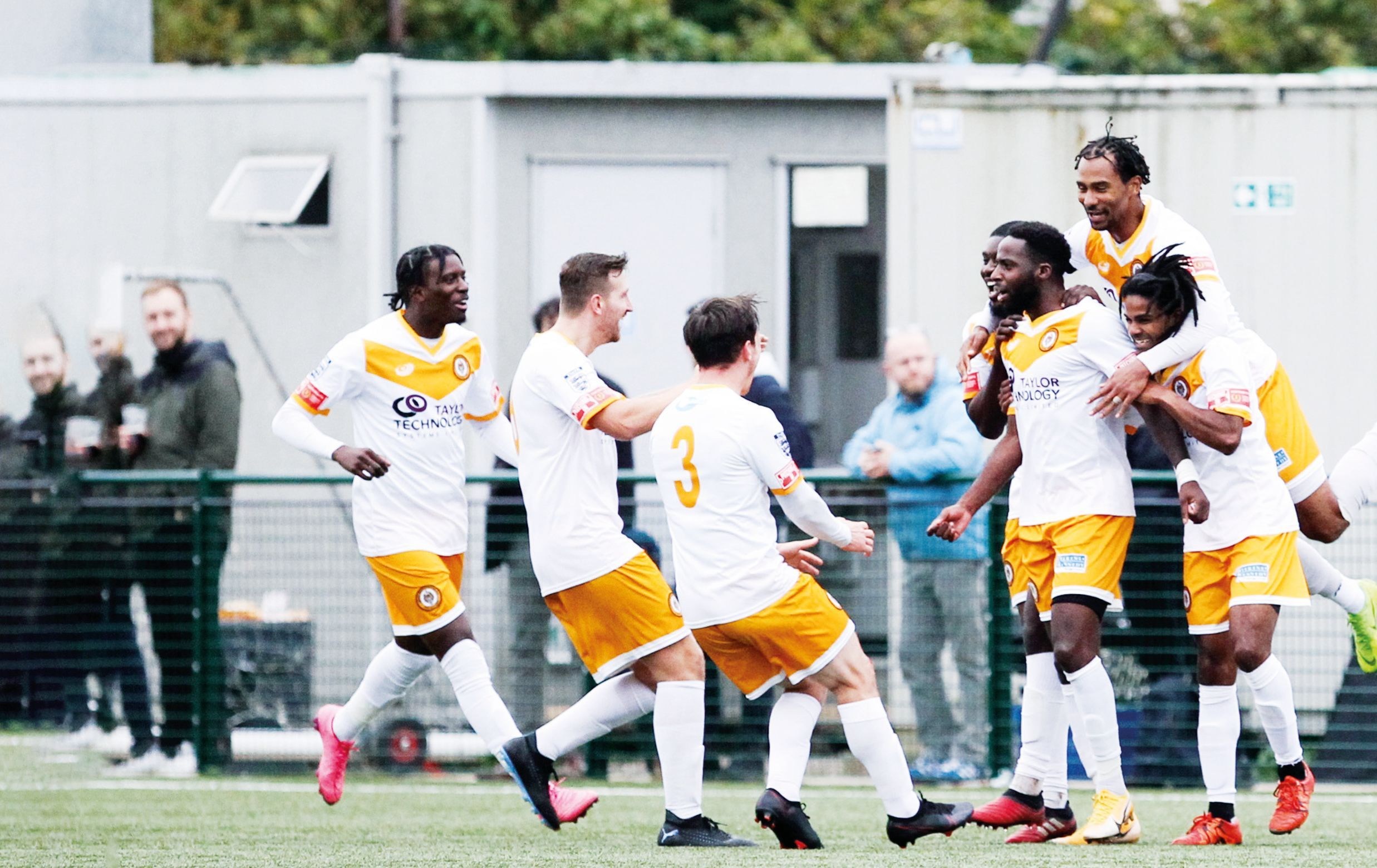By Chris Palmer DARTFORD 1 Carruthers 88 FOLKESTONE I 2 Pigott 33, Yussuf 79 PICK THAT ONE OUT: Invicta keeper Ted Collins can’t keep out Samir Carruthers’ 88th-minute consolation goal from a free-kick FOLKESTONE stretched their winning streak to nine as they condemned Dartford to a sixth defeat of the...