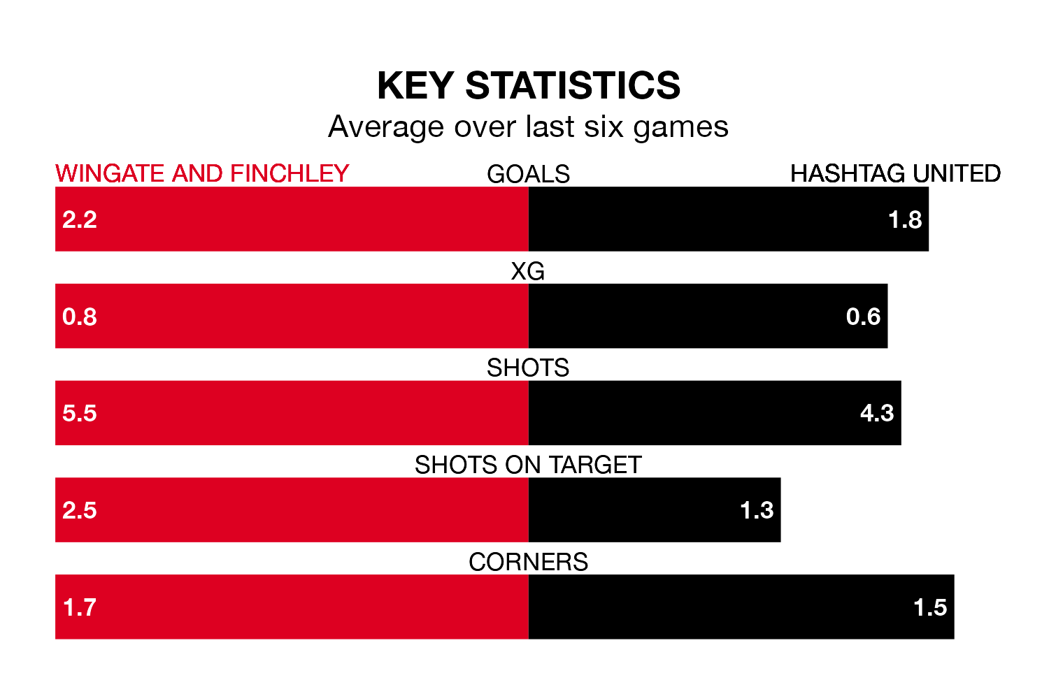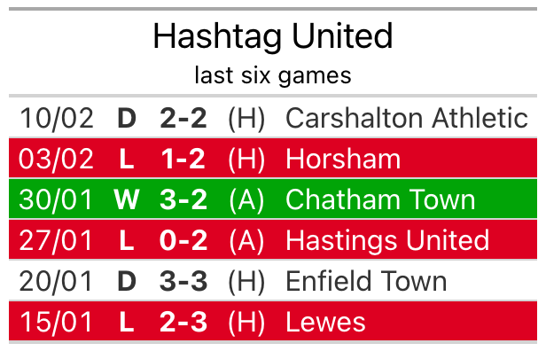 Hashtag are also above average scorers, with 1.7 goals per game, compared to a league average of 1.6. They have conceded 1.8 goals per game.