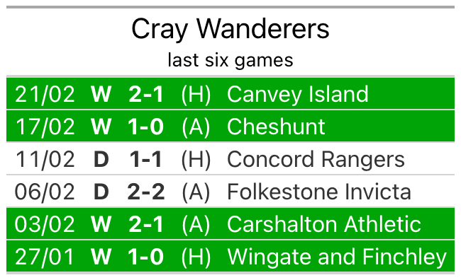 Cray are unbeaten in six, with four wins and two draws, ahead of the 3pm kick-off.
