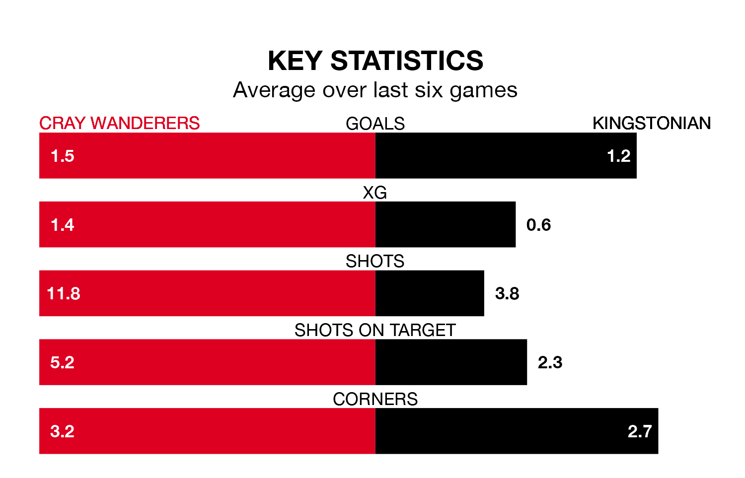 On average, Cray scored 1.1 goals and Kingstonian 1.3 in those matches.