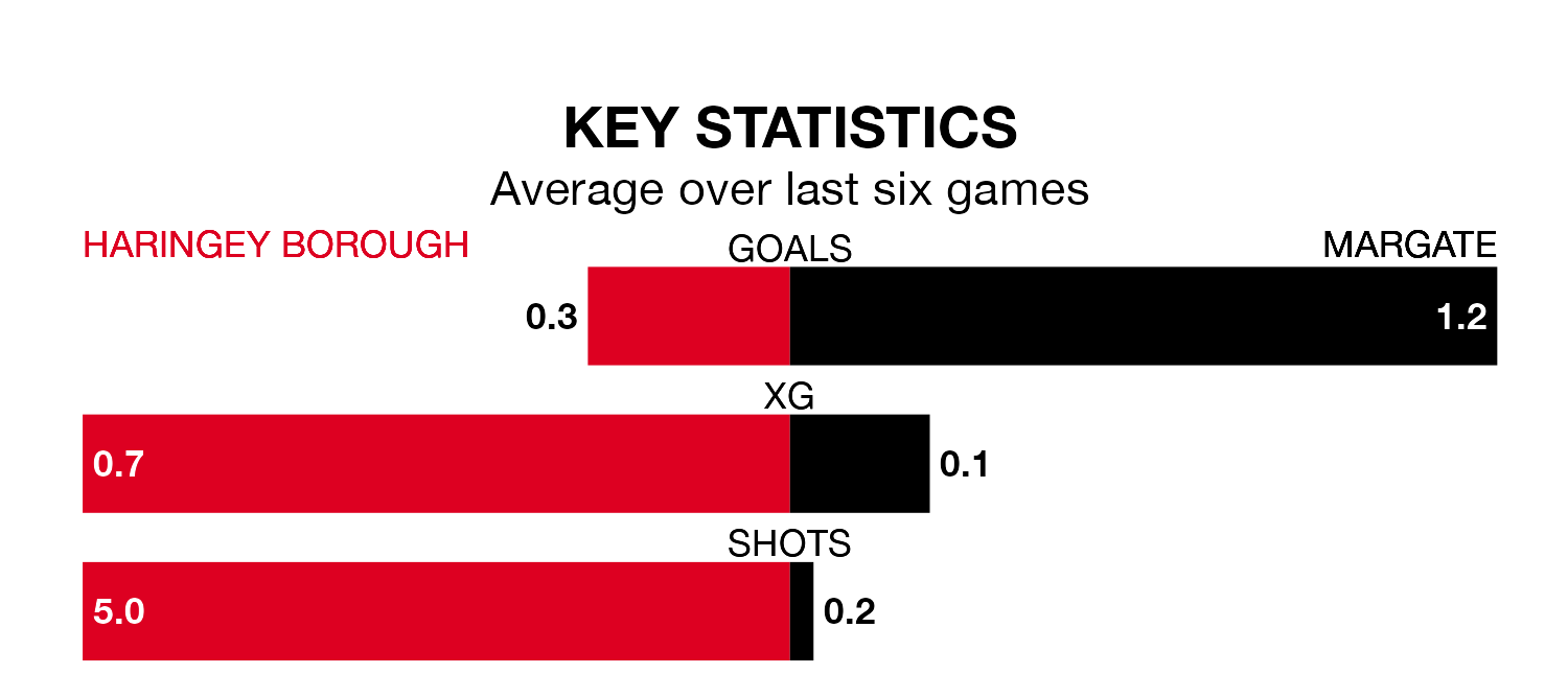 Haringey have drawn two and lost four of the last six, while Margate have taken just one win.