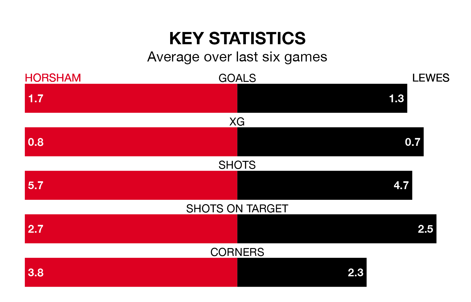 Horsham have picked up five wins and one draw in their last six Isthmian Premier Division games, and face a Lewes side whose last six games have brought two wins and four losses.