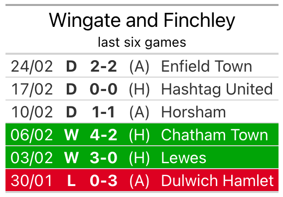 Wingate & Finchley are fourth in the table after 31 games, of which they have won 16 and drawn five, earning 53 points.