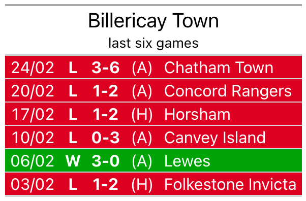 Billericay, who sit third in the league after 32 games, fell to a 6-3 away defeat to Chatham Town on February 24.