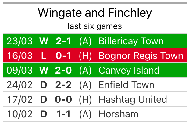 Wingate & Finchley are also above average scorers, with 1.8 goals per game, compared to a league average of 1.6. They have conceded 1.6 goals per game.