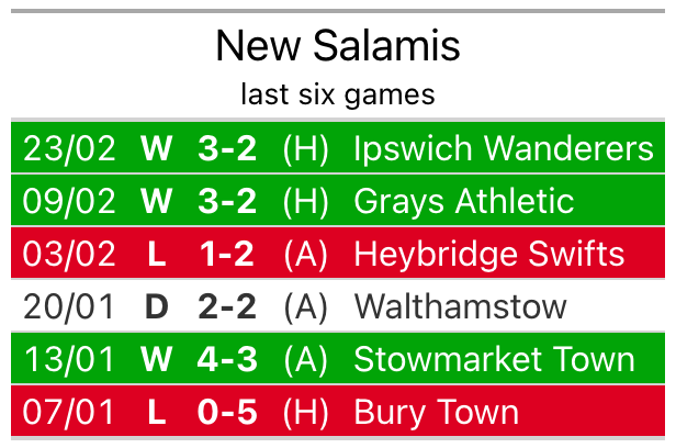 New Salamis beat Ipswich Wanderers 3-2 last time out, on February 23.