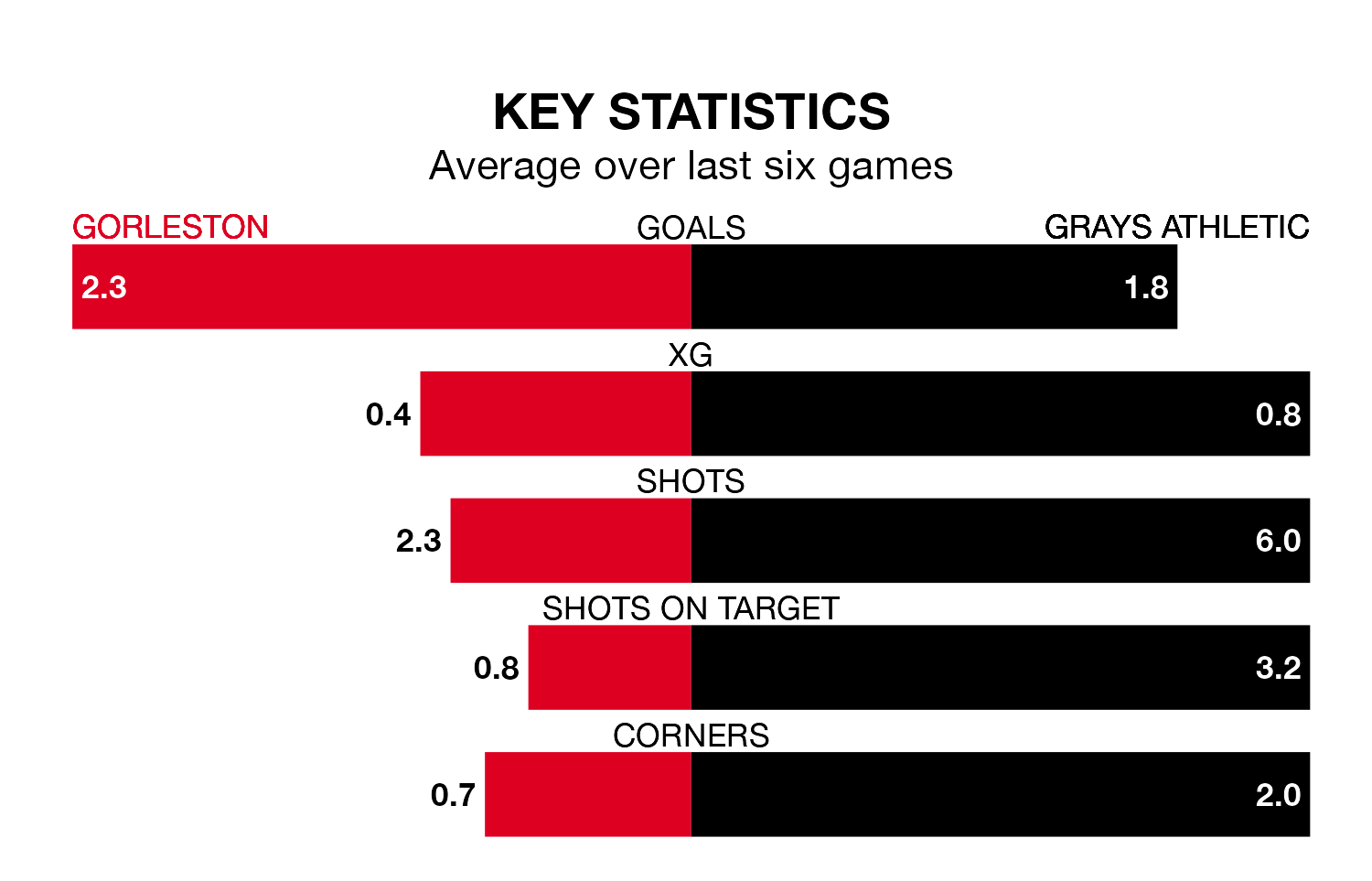 With two wins and a draw over that period, Grays’s form is worse – they have taken seven points from 18, compared to Gorleston’s 11.