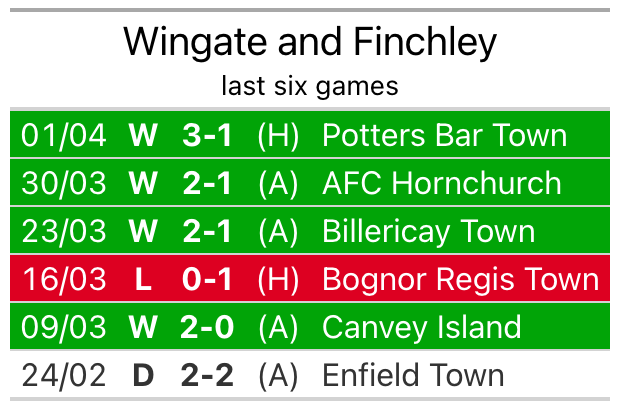 Wingate & Finchley have picked up 13 points from their last six games, and they face a Beach Boys side who have lost their last nine matches, and collected no points from the last possible 18.