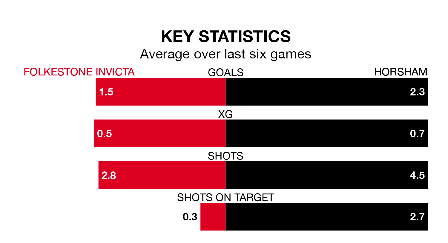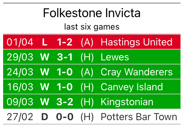 Horsham have picked up 12 points from their last six games, and they face a Folkestone Invicta side who lost their last match, and have collected 13 points from the last possible 18.