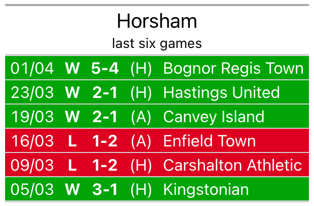 Horsham beat Bognor Regis Town 5-4 last time out, also on Monday.