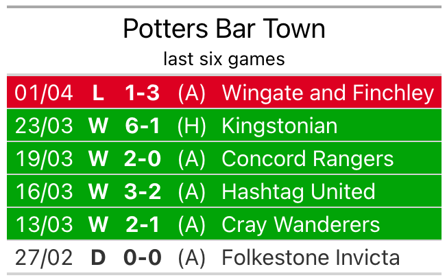 Their last meeting was on December 16, when Potters Bar won 4-1 away.