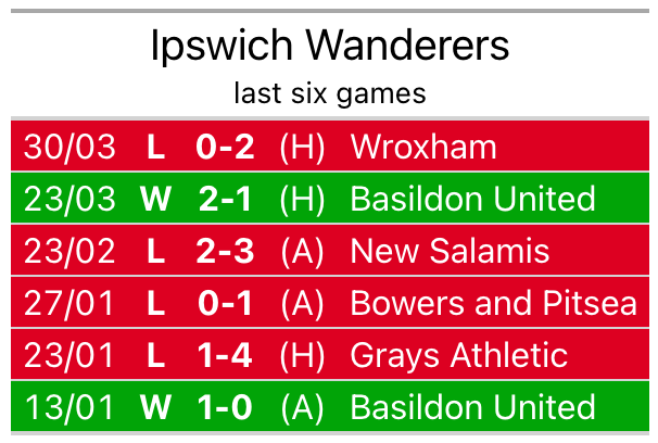 Ipswich’s last match was on Saturday, a 2-0 loss against Wroxham.