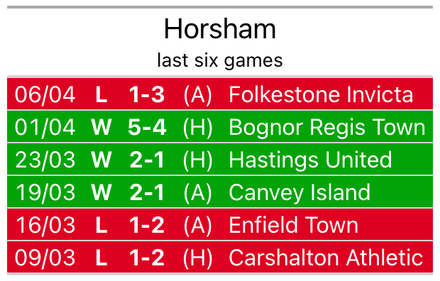Horsham are in mixed form in the Isthmian Premier Division, with three wins and three losses from their last six games.