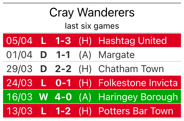 With a win and two draws over that period, Cray’s form is worse – they have taken five points from 18, compared to the home side’s nine.