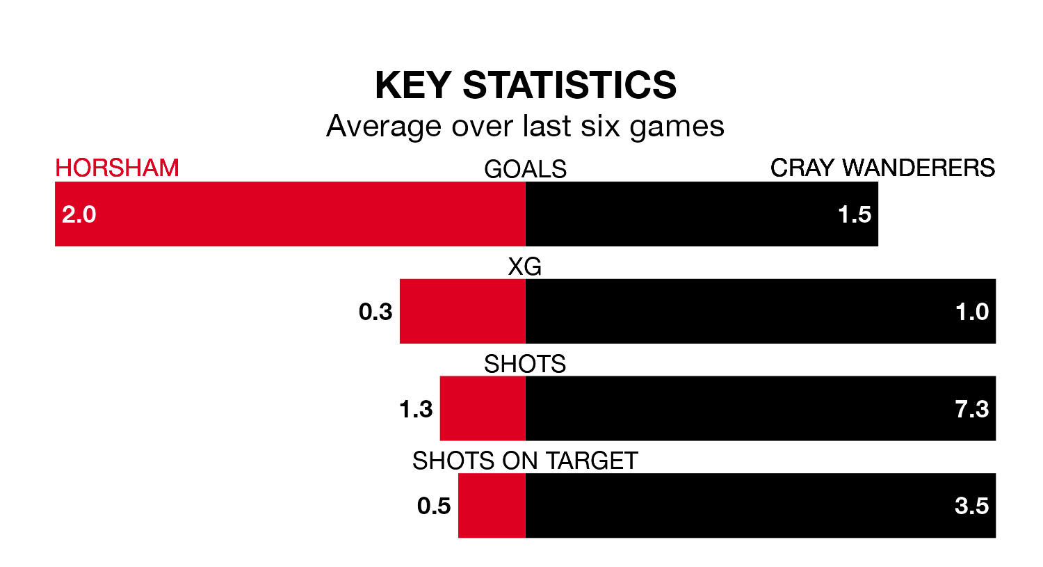On average, Horsham scored 1.6 goals and Cray 3.0 in those matches.