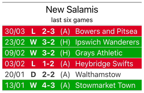 New Salamis travel to Maldon and Tiptree on Saturday in the Isthmian League Division One North.