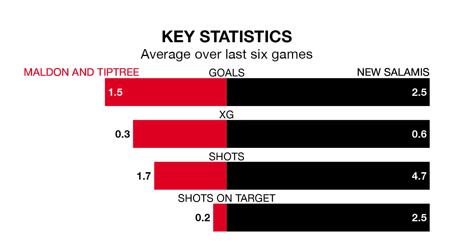 In the last three years, Maldon & Tiptree and New Salamis have played each other on three occasions. New Salamis won two of them and they drew once.
