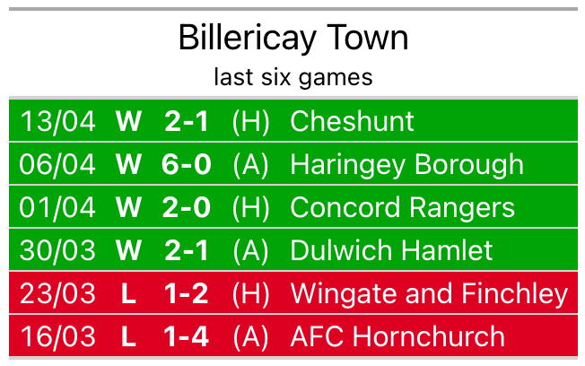 Billericay beat Cheshunt 2-1 last time out, also on April 13.