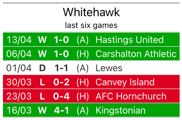Their last meeting was on March 24 2018, when Whitehawk won 2-0 at home.