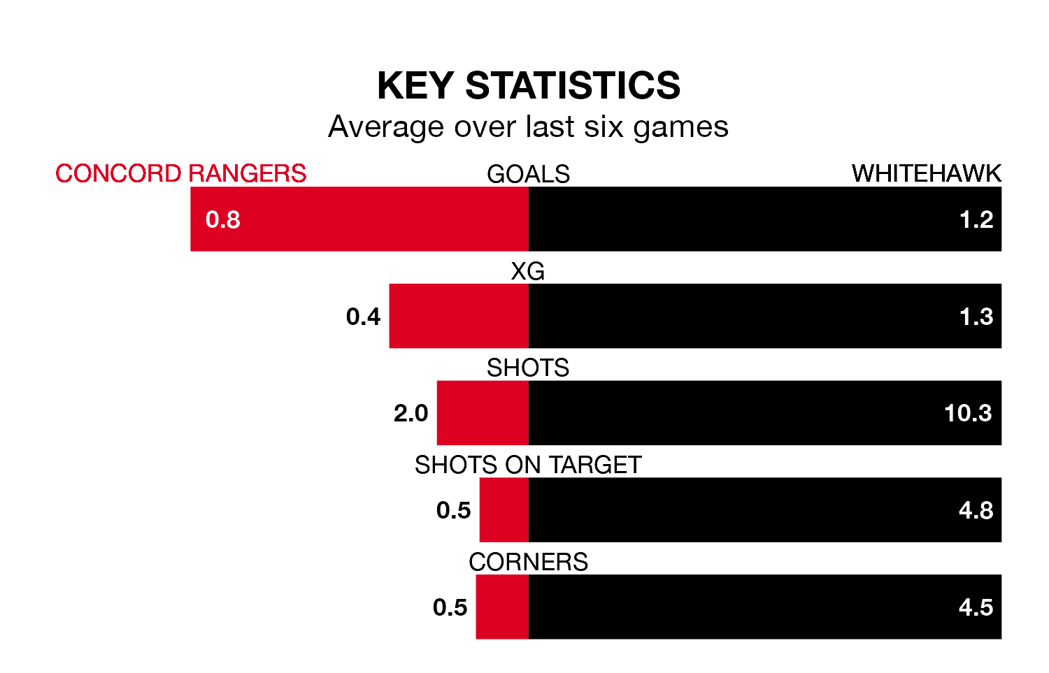 In the last 10 years, Concord and Whitehawk have played each other on eight occasions. Concord won four of them, Whitehawk two, and they drew twice.