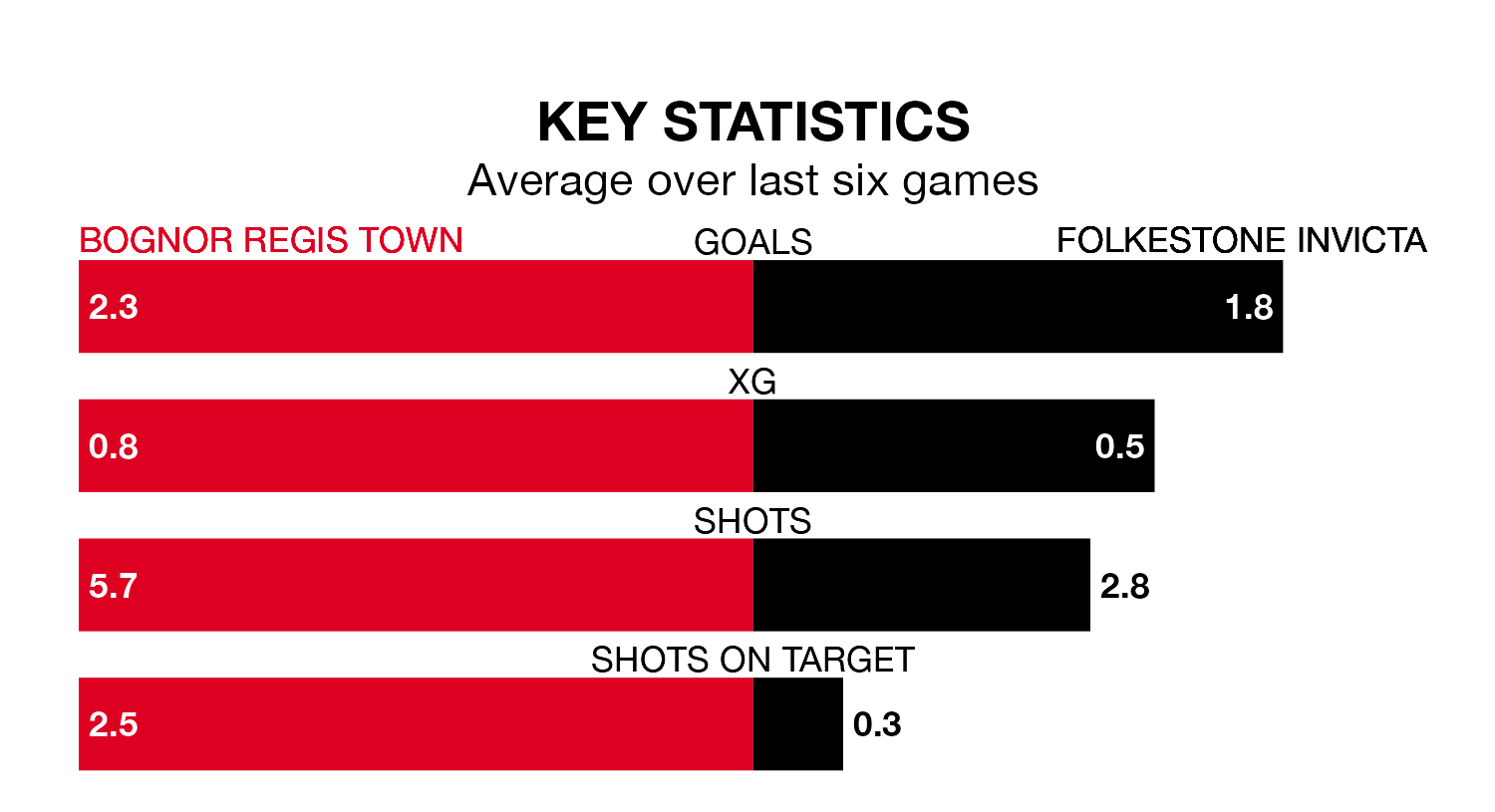 Bognor Regis have picked up one win and one draw in their last six Isthmian Premier Division games, and face a Folkestone Invicta side whose last six games have brought three wins and one draw.