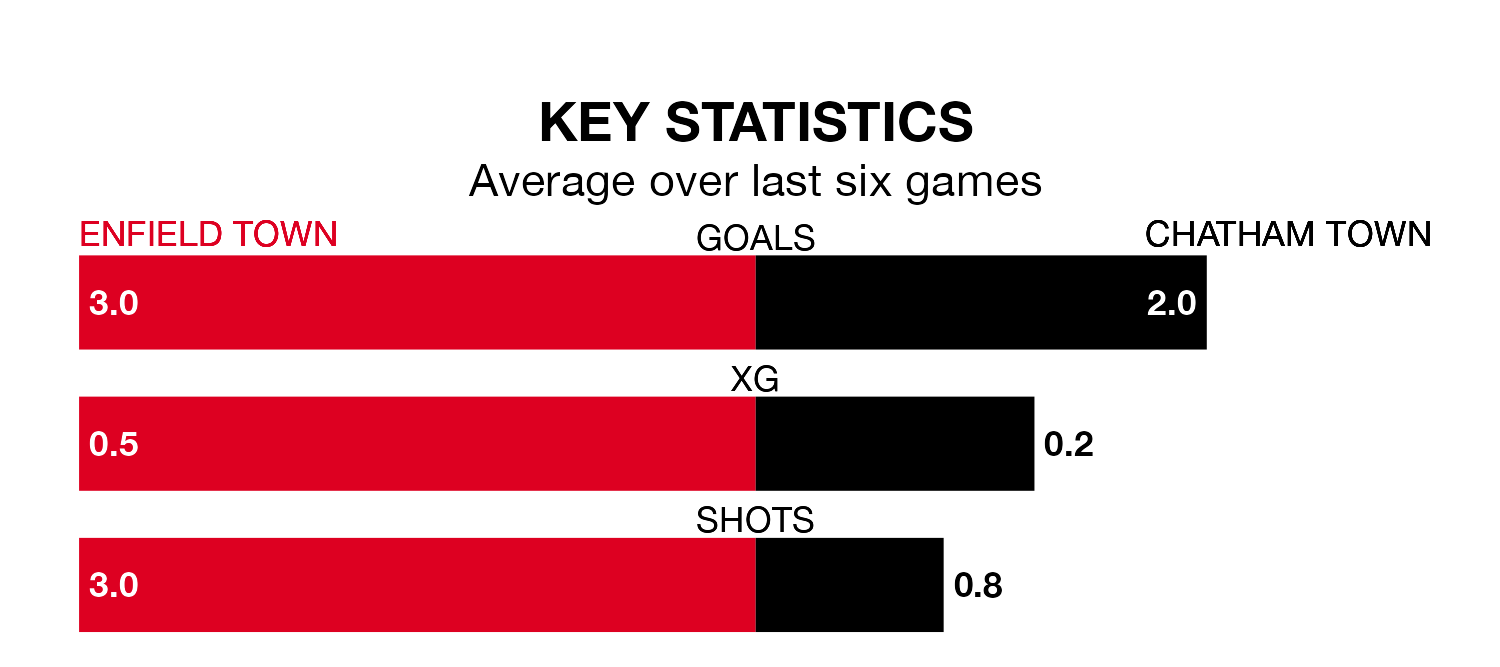 With three wins and a draw over that period, Chatham Town’s form is much worse – they have taken 10 points from 18, compared to the home team’s 16.