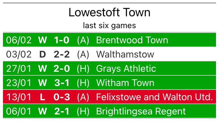 Lowestoft Town are in good form in the Isthmian League Division One North, with four wins and a draw from their last six games.