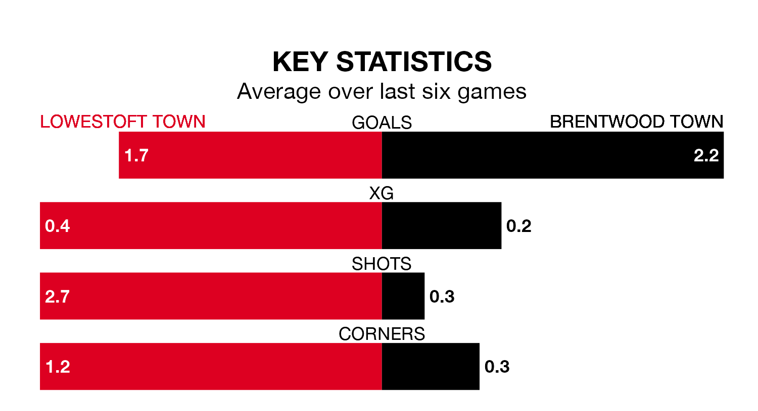 And also with four wins and a draw over that period, Brentwood Town’s form is identical – they have both taken 13 points from 18.
