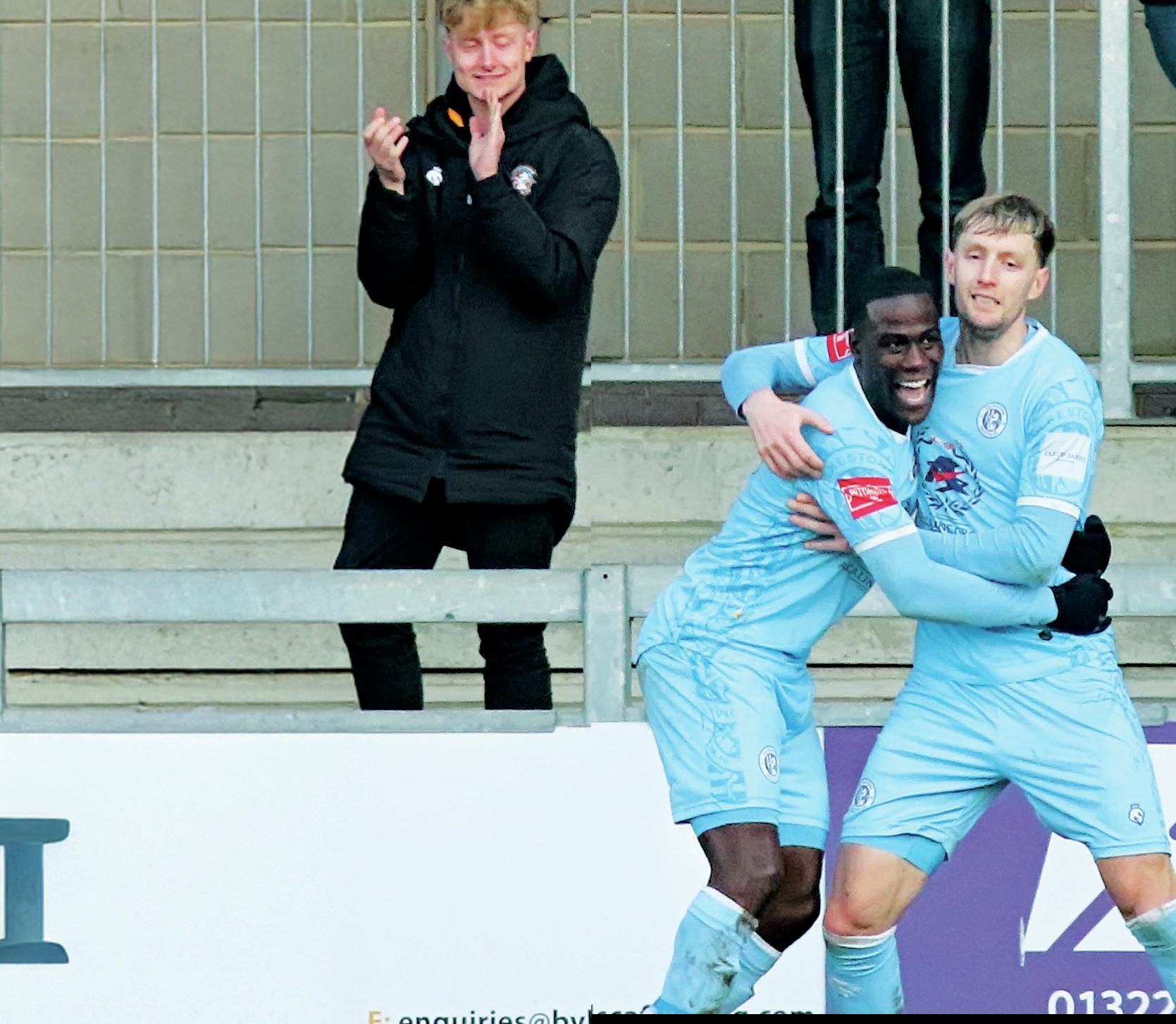 PICK THAT ONE OUT: Invicta keeper Ted Collins can’t keep out Samir Carruthers’ 88th-minute consolation goal from a free-kick
