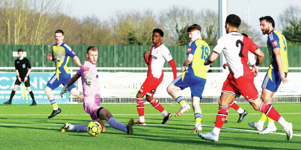 A goal deep into stoppage time from Dulwich’s Joseph Adewunmi denied ten-man Folkestone Invicta victory after an extraordinary second half on the home side’s first game back on its new 3G pitch at the Alcaline Stadium.