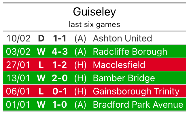 Guiseley’s last match was on February 10, a 1-1 draw against Ashton United.