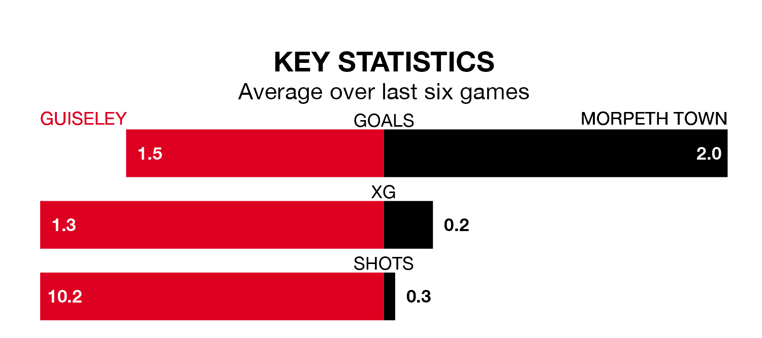 Guiseley are also above average scorers, with 1.8 goals per game, compared to a league average of 1.7. They have conceded 1.6 goals per game.
