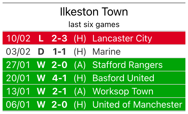 Ilkeston lost, 3-2 at home against Lancaster City on February 10.