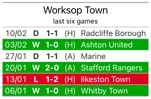 Worksop Town are sixth in the table after 29 games, of which they have won 15 and drawn seven, earning 52 points.