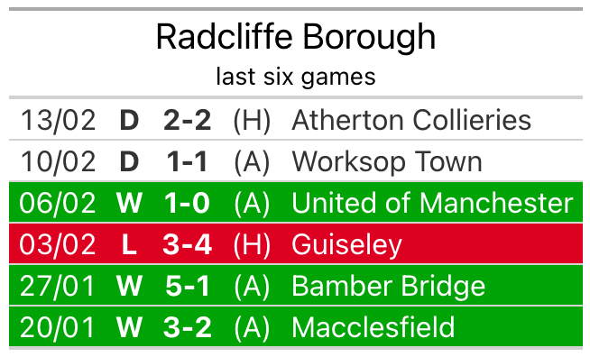 Radcliffe have picked up 22 wins and two draws from 30 games so far this season, and sit 15 points above the visitors going into the 3pm match.