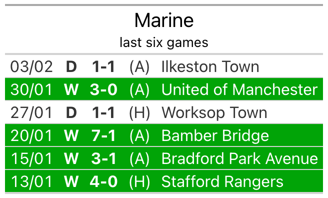 Marine drew 1-1 with Ilkeston Town last time out, on February 3.