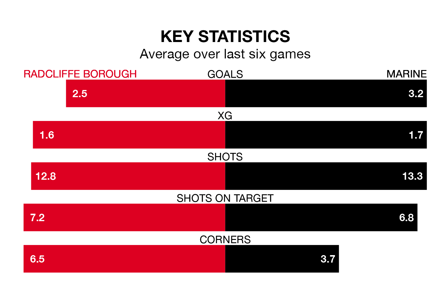 With 82 goals in 30 games so far this season, Radcliffe are the league’s highest scorers with 2.7 goals per game. And they are conceding fewer than average, letting in 43 goals at a rate of 1.4 per game.