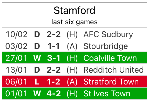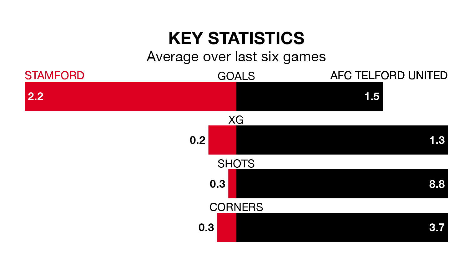With three wins and two draws over that period, the visitors’ form is better – they have taken 11 points from 18, compared to Stamford’s six.