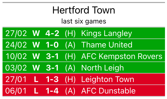 Hertford, meanwhile, are average scorers, with 1.7 goals per game. They have conceded 1.6 goals per game.
